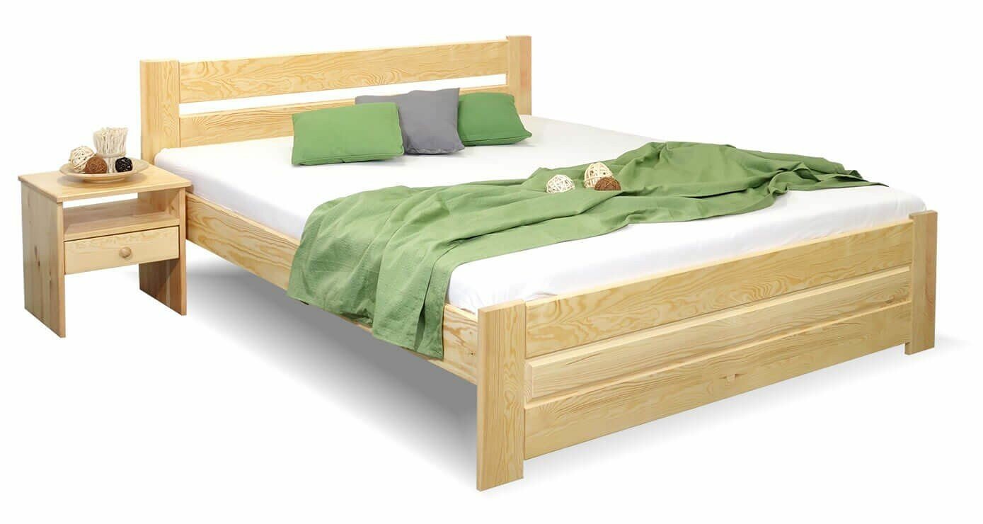 Dřevěná postel dvoulůžko Hanka je vyrobená z masivního dřeva borovice a na první pohled zaujme svým hezkým jednoduchým tvarem. Vyznačuje se dostatečnou nosností až 2x130 kg. Postel se vyrábí ve dvou provedeních – s plochou pro matrace 180x200 cm nebo 160x200 cm. Poměr cena vs. užitná hodnota je zde velmi příjemný a proto můžeme postel z masivu borovice Hanka zcela jistě doporučit.